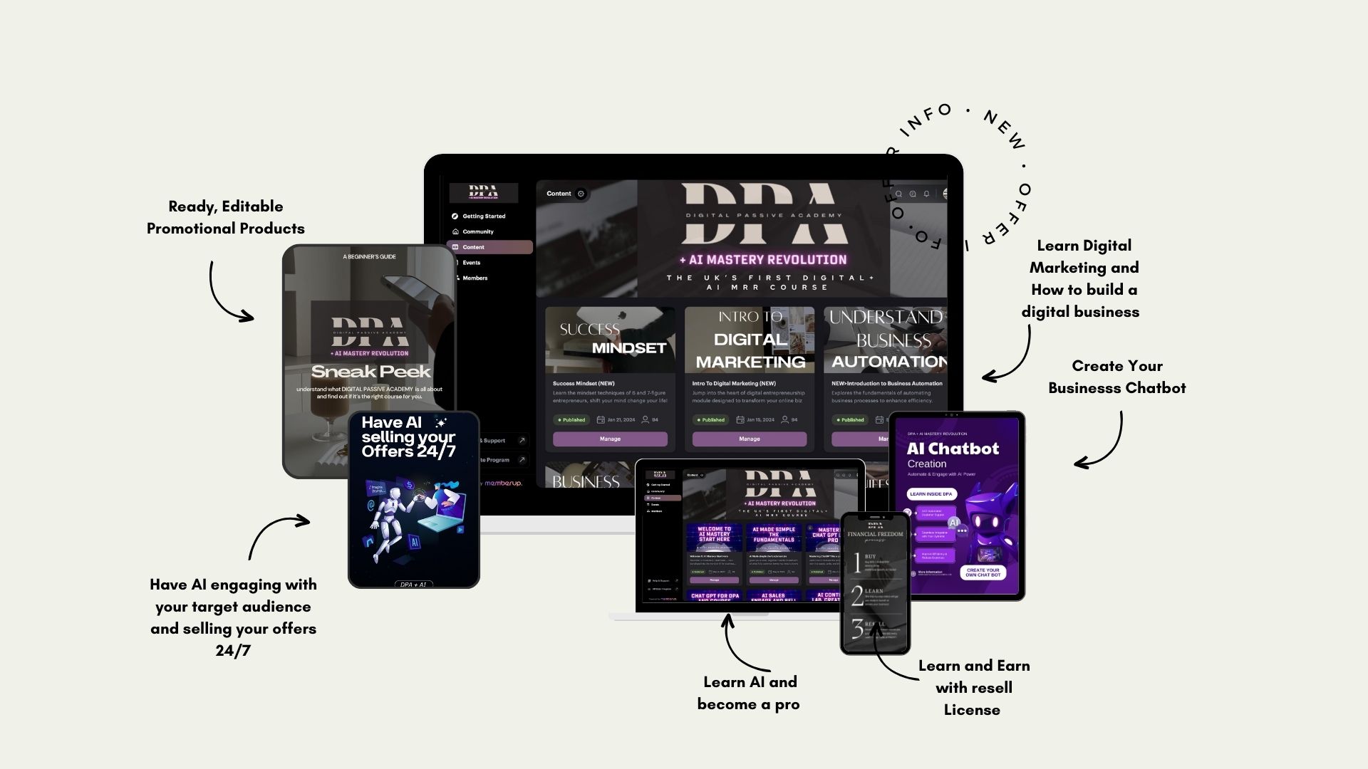 – Digital Passive Academy (DPA): A full done-for-you marketing course that teaches you how to build a digital product business and comes with Master Resell Rights — meaning you can sell it for 100% profit.